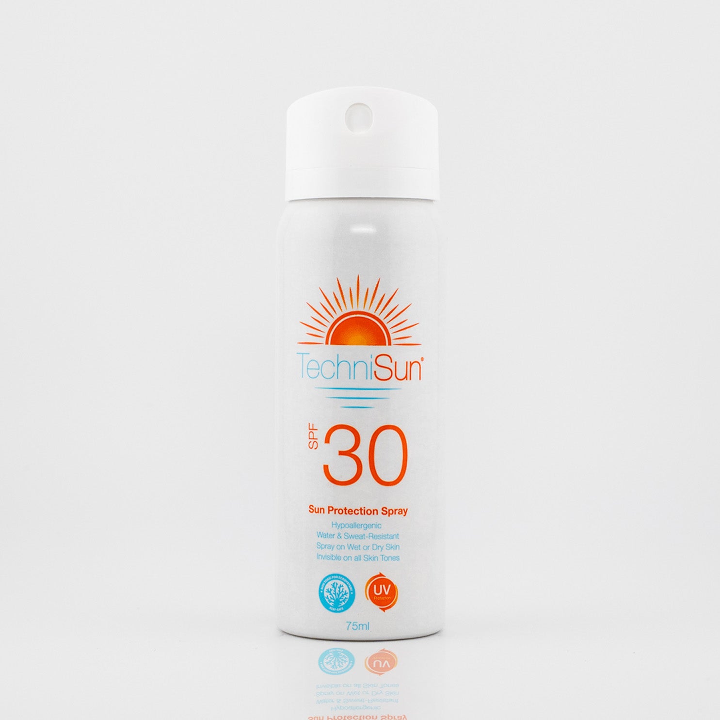 Our new generation sunscreen, TechniSun, is a broad spectrum sunscreen providing high protection against UVA, UVB and Infrared-A. It offers high quality protection without the sticky residue or white cast, and it's perfect for the beach too because sand won’t stick. Long lasting, very water-resistant and quick and easy to apply, the light, clear CFC-free spray allows skin to breathe, reducing the symptoms of prickly heat rash.